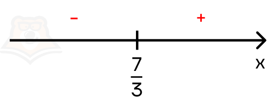 Решение. Найдем, при каких значениях х модуль равен 0. Получаем 3x = 7 \(\rightarrow\) \(x = \frac{7}{3}\).