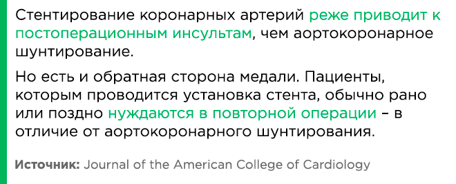 - Стентирование вызывает намного меньше осложнений, нежели шунтирование.