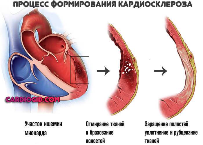 Выраженный кардиосклероз. Замещение функциональной активной ткани, миоцитов, на рубцовую. Она не способна сокращаться. Операция в этом случае бесполезна, поскольку восстановить кровоток невозможно из-за органических изменений миокарда.