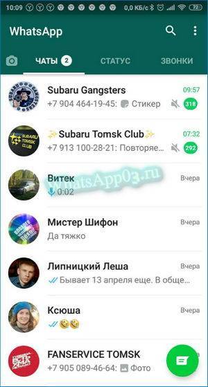Главное отличие Вайбера от Ватсапа – интерфейс. В WhatsApp используются зеленые тона, интерфейс главного экрана выглядит следующим образом: