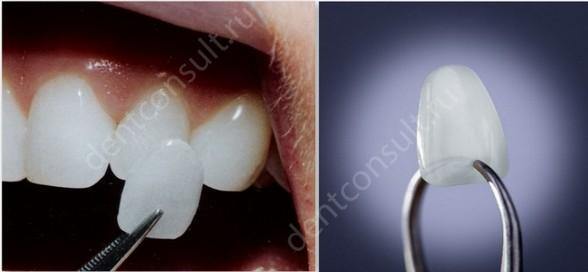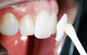 Процедура проводится в несколько этапов. Вначале с зуба счищается место для пластины. Обычно ее толщина не превышает 0,7 мм. Потом делается слепок зубов, и он отправляется к зубному технику.