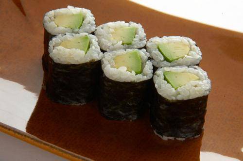 Вторые блюда, при приготовлении которых использовался авокадо, часто причисляют к роллам. Готовят их традиционным способом. В листы нори, помимо кусочков фрукта, добавляют креветки, лосося, красную рыбу, сыр, огурец.