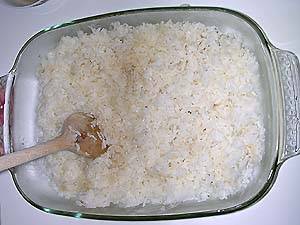 Распределите рис равномерно по поверхности нори, оставляя свободное пространство в верхней части.