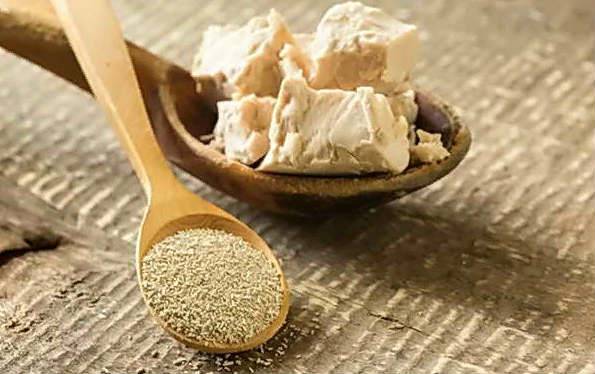 В состав дрожжей тоже входит данный продукт. Но, натуральный пекарский порошок немного отличается от того, который насыщает дрожжи. Дело в том, что в дрожжах разрыхлитель биологический — основанный на живых микроорганизмах. Попадая в тесто, а затем в теплое место, они начинают свое активное развитие и размножение, тем самым выделяя газ углекислый. Для данного процесса требуется не мало времени. Пекарский же порошок оказывает мгновенный эффект.