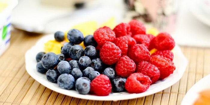 Ягоды. Доступные, известные варианты: красная и черная смородина, вишня, клубника. Достаточно положить в утреннюю овсяную кашу 2 ст. ложки малины, и вкусный завтрак готов. Нетрудно смешать киви с молоком и взбить блендером, получится смузи. Не все специалисты включают в меню виноград, в нем много сахара.