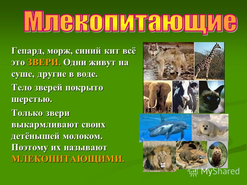 Доказательством происхождения млекопитающих от пресмыкающихся служит сходство во внешнем и внутреннем строении, однако есть и различия. Млекопитающие теплокровные животные, для них характерно живорождение и наличие млечных желез.