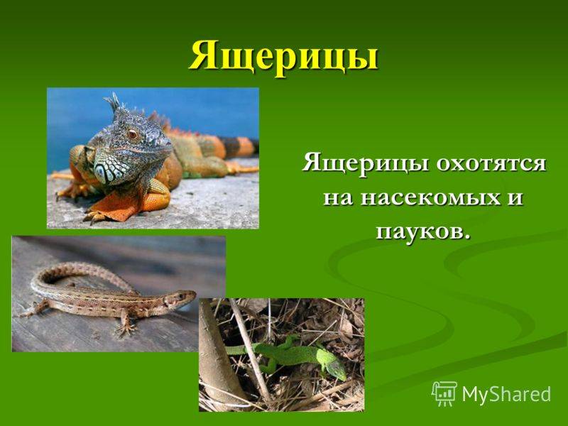 Ящерицы обычно невелики по размеру и имеют маленькие конечности, но они очень быстрые существа. Ящерицы – хищные животные, и они в основном питаются мелкими насекомыми, но более крупные ящерицы, такие как дракон Комодо, могут есть таких же крупных животных, как водяной буйвол.