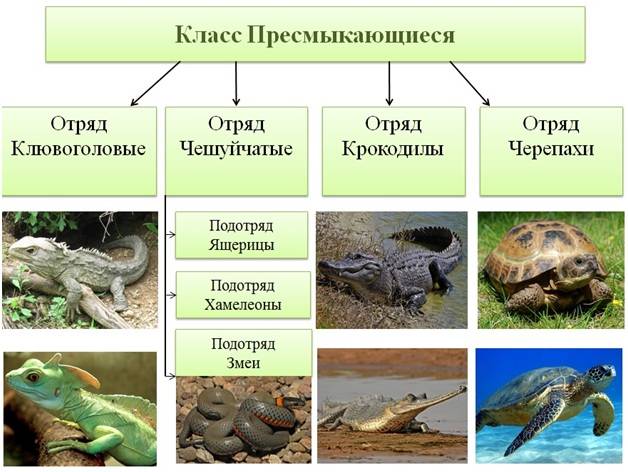 Современные представители пресмыкающихся – это лишь малая часть от богатого мира древних рептилий. Современная систематика разделяет класс на 4 отряда.