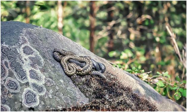 В нашей фауне из ядовитых змей чаще всего встречается гадюка. Днем она греется на солнце, а ночью ловит добычу: мышей, птенцов, лягушек, даже насекомых.