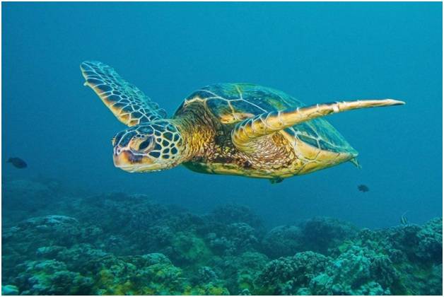 Интересными являются морские черепахи, у которых передние конечности представляют собой ласты, приспособленные для плавания.К ним относится зеленая или суповая черепаха, обитательница жарких поясов.