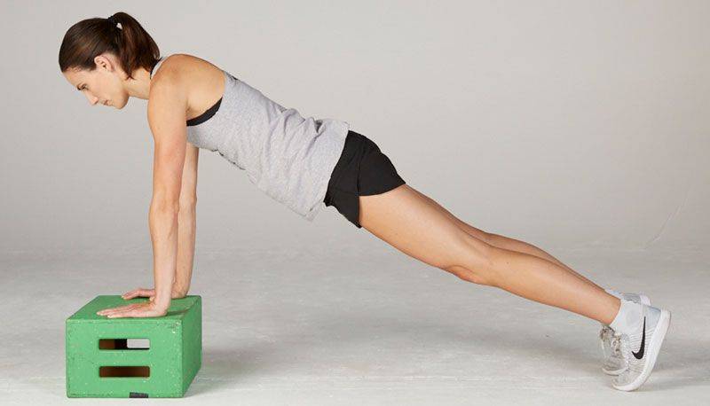 Этот тип вам следует рассмотреть и в том случае, если вам сложно делать движение в классическом варианте. Наклонные отжимания нагружают мышцы таким же образом, как и обычные. Разница в том, что руки ставятся на наклонную поверхность. Это может делать упражнение более простым. Чем выше поставлены ваши руки, тем проще вам будет. По мере того как вы становитесь сильнее, передвигайте руки ниже и ниже.