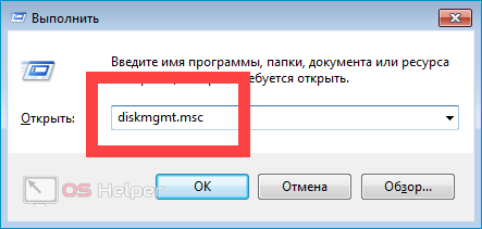 - Воспользоваться комбинацией клавиш Win+R, вставить и исполнить команду «diskmgmt.msc».