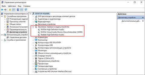 2. Раскройте ветку «Звуковые, игровые и видеоустройства».