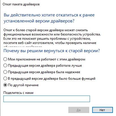 В итоге старая версия драйвера полностью удаляется через Диспетчер устройств и устанавливается новая.