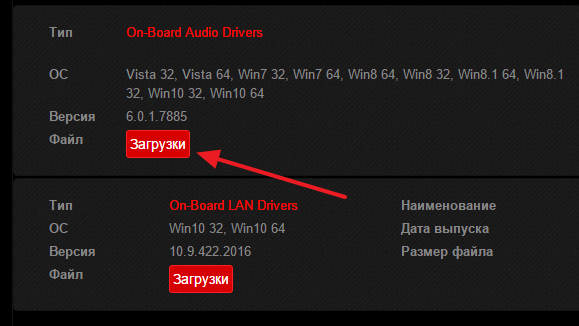 Трудности могут возникнуть с поиском самого драйвера. Если вы используете встроенную звуковую карту, то драйверы нужно искать на сайте производителя материнской платы вашего ПК либо на сайте производителя ноутбука. Введите в поисковую систему (например, в Google) название вашей материнской платы (либо название модели ноутбука) и перейдите на сайт производителя. Дальше нужно перейти в раздел «Поддержка — Драйверы». В результате перед вами появится список драйверов в котором нужно будет найти драйвер звуковой карты и скачать его на свой компьютер.