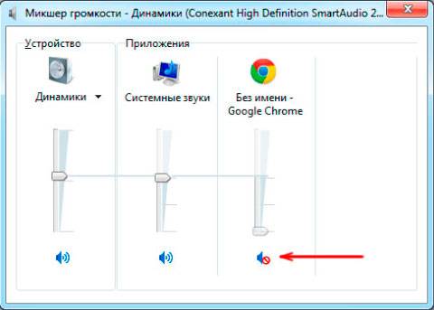 В первую очередь рекомендуется проверить настройки звука. Запустите любую музыку или видео в браузере, например, ВКонтакте. Это нужно, чтобы настройки громкости отобразились в микшере.