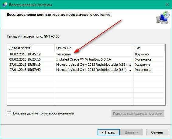 Единственный минус данного способа является то что при восстановлении будут удалены все приложения и драйвера установленные после выбранной даты точки восстановления. Для активации режима восстановления необходимо выполнить следующие действия:
