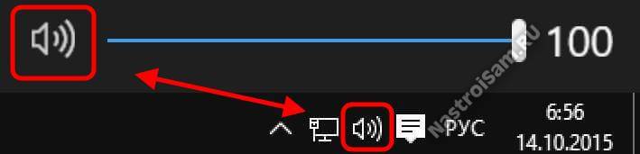 - Также возможно, что перечеркнутый кружок не отображается, а звука все равно нет. В таком случае проверьте регулятор громкости и установите его в верхнее положение.