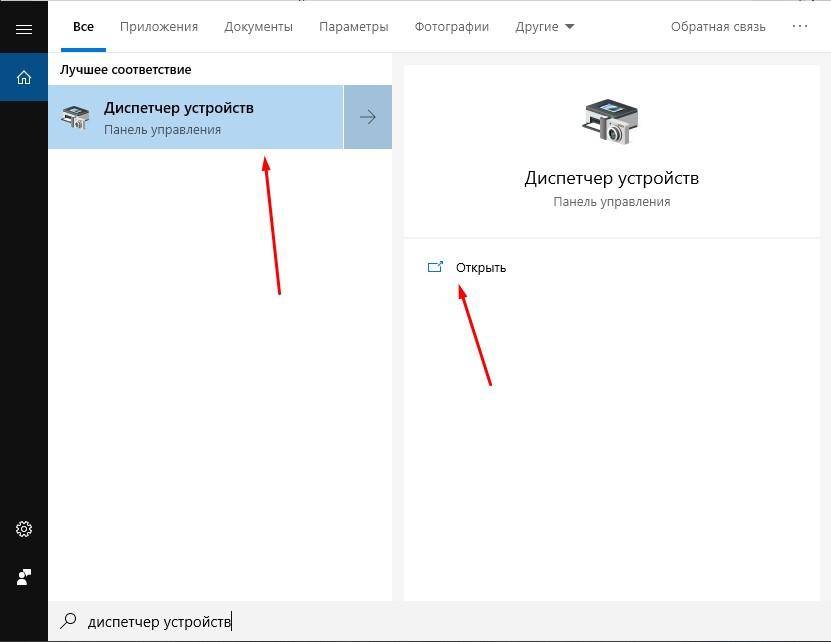 Рис. №4. Результаты поиска по запросу «Диспетчер устройств» в панели управления