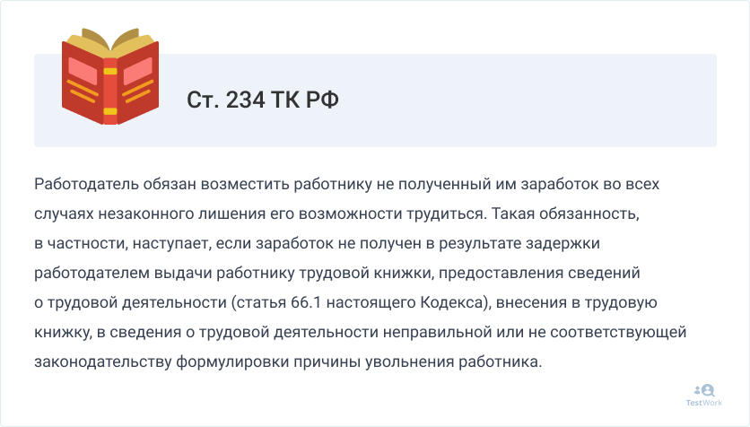 В этом случае сотруднику компенсируется недополученный им заработок. По решению суда на организацию может быть возложена обязанность компенсировать моральный вред.