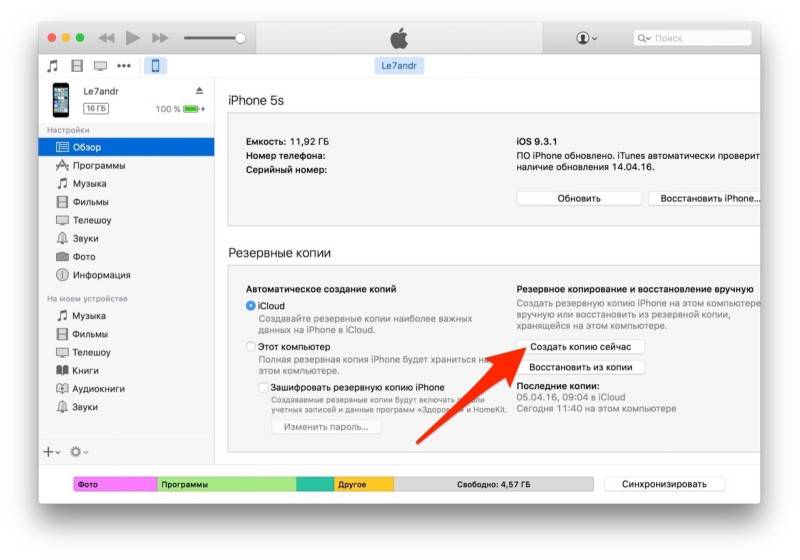Откройте Айтюнс и синхронизируйте смартфон с программой. Далее убедитесь в том, что на ПК хранится копия файлов и установленных программ – бэкап. Если такой копии нет, создайте её.