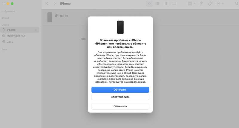 Имейте в виду, что используемый компьютер должен быть подключен к интернету. Так как режим восстановления предусматривает автоматическую загрузку и установку последней версии iOS, а она, как правило, превышает 1 Гб.