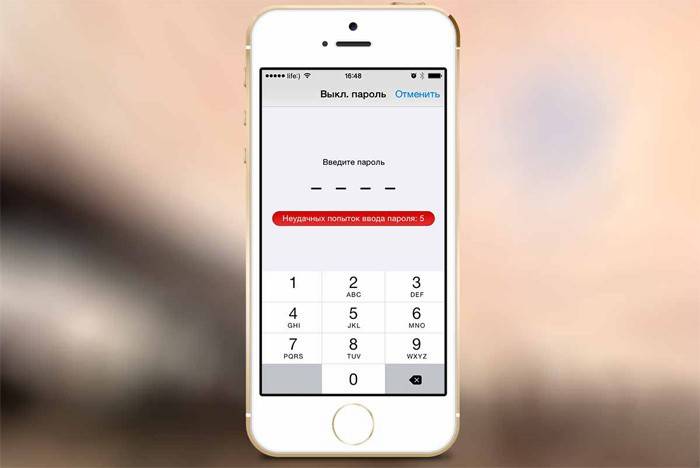 Многократное неправильное введение пароля приведет к блокировке Айфона