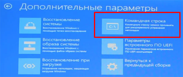 В среде восстановления переходите «Поиск и устранение неисправностей» – «Дополнительные параметры» – «Командная строка».