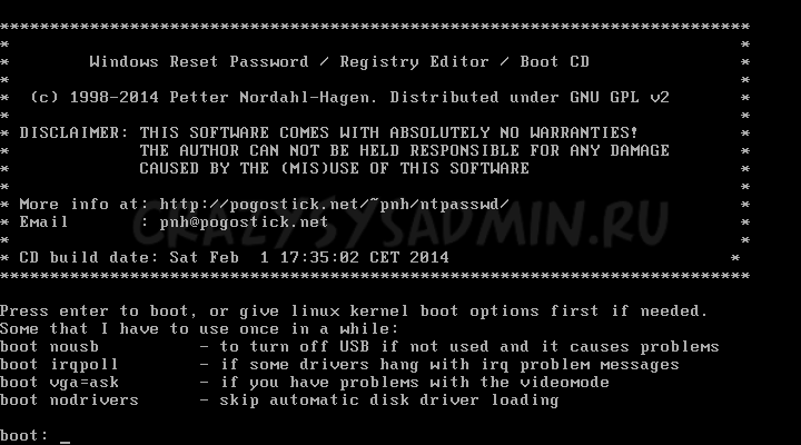 Способ №3 – сброс пароля с помощью специальных программ и загрузочной флешки