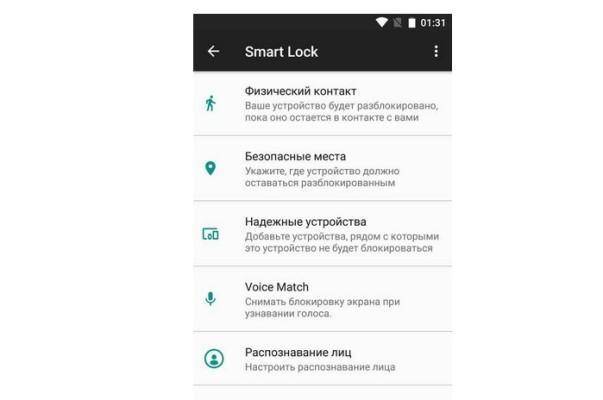 В операционной системе есть функция Smart Lock. Она позволяет снимать блокировку в разных режимах. Вот наиболее распространенные: