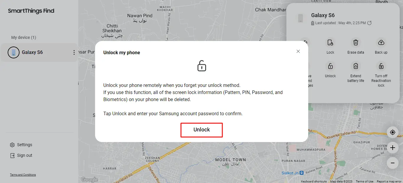 Появится всплывающее окно. Нажмите Отпереть, введите данные своей учетной записи Samsung и продолжайте. Ваша блокировка будет успешно удалена в течение нескольких секунд.