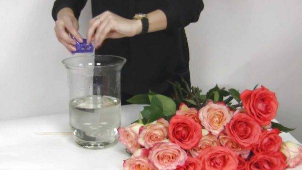 - Но самый простой вариант это сразу же с букетом приобрести специальный порошок, который следует просто добавить в воду, предварительно внимательно изучив инструкцию на упаковке товара.