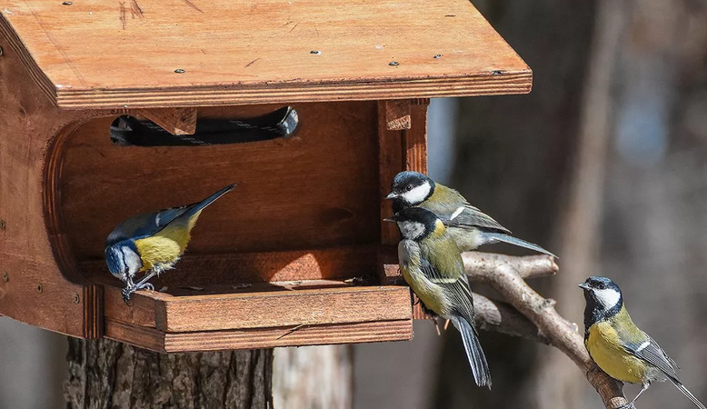 Вы также можете построить скворечники для синиц. Им нравятся домики небольшого и среднего размера с маленькими окошками. «Дверь» или проем не должны быть большими в диаметре (около 3,5 см — подходящий размер для птичьих домиков).