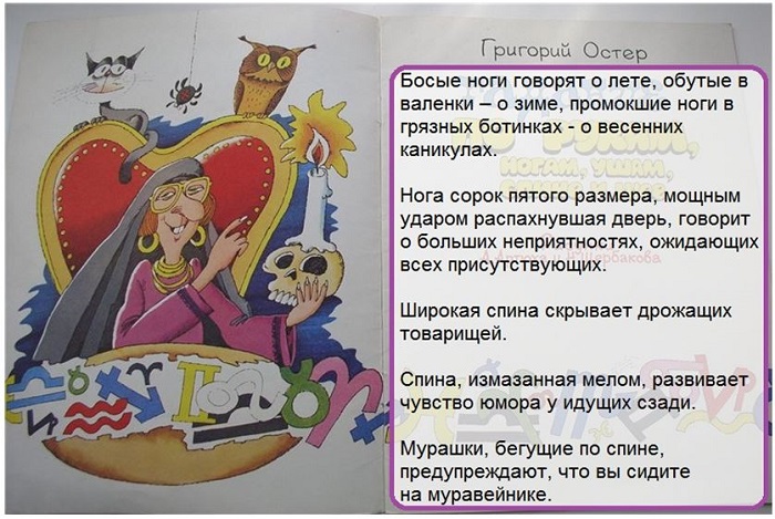 Попробуйте найти причастия полной формы в тексте из книги Григория Остера «Гадания по рукам, ногам, спине и шее». Постарайтесь запомнить употребление гласных в суффиксах причастий: