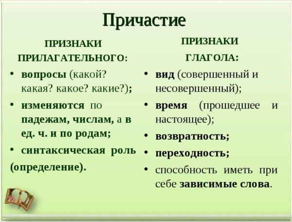 Несмотря на такую официальную формулировку, отмечающую связь с глаголом, эта часть речи обладает многими характеристиками другой части речи – прилагательного.