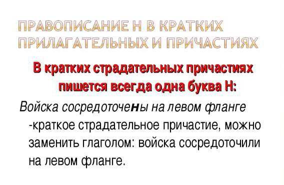 Полная и краткая форма причастия, а также отглагольного прилагательного различаются по правописанию суффикса. Согласно правилам русского языка, в полной форме количество букв «н» в суффиксе зависит от вида, наличия приставки и зависимых слов. У отглагольных прилагательных на правописание влияет гласная в суффиксе и особенности словообразования. А вот в краткой форме буква «н» в суффиксе всегда одна.