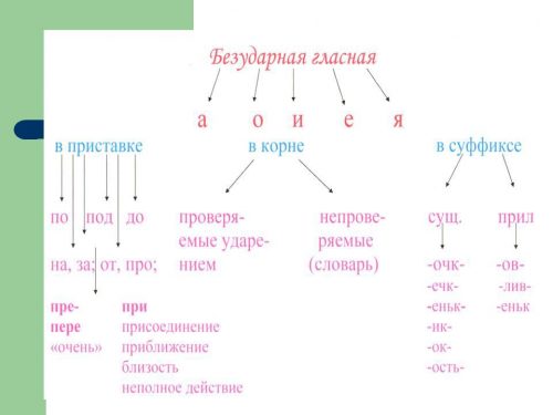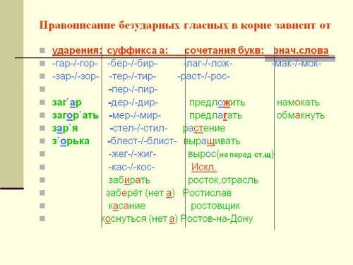 - Гласный звук в середине слова после ударения имеет аналогичное свойство: сльн[А/О]е, красв[О/А].