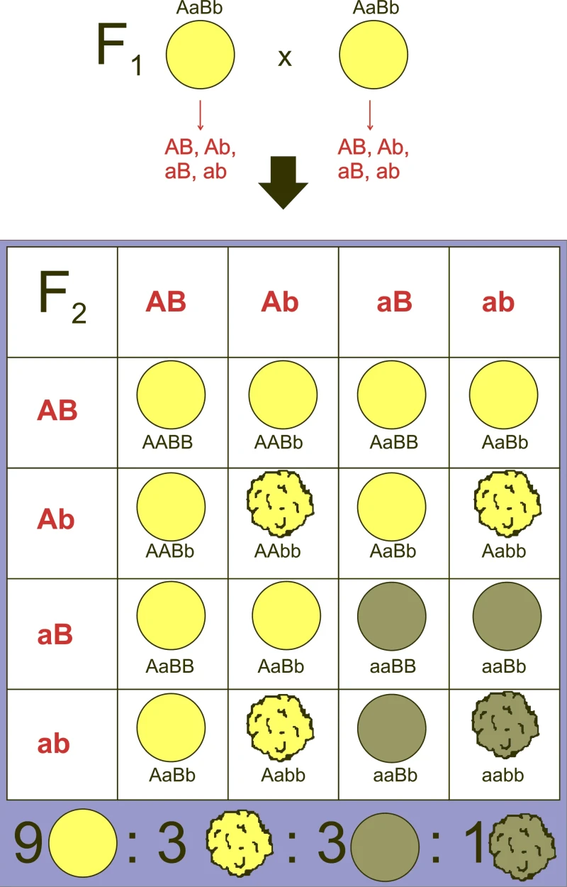 Дигибридное скрещивание позволяет определить, как одновременно наследуются два отдельных признака.