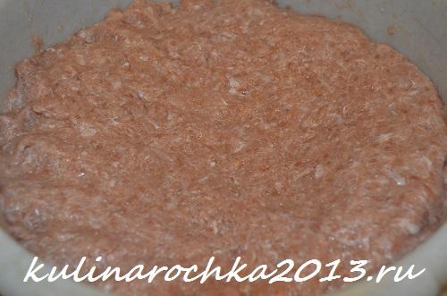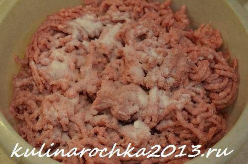 И тщательно перемешиваем свиной мелкий фарш в течении 5-7 минут. Этого будет вполне достаточно. И убираем фарш на сутки в холодильник просаливаться и настаиваться.