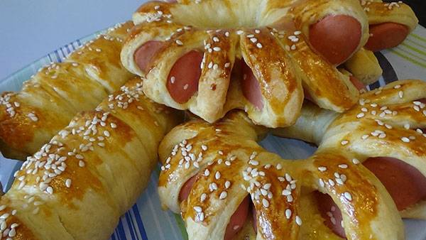 Вкусные сосиски «Березки» в слоеном тесте с кунжутом