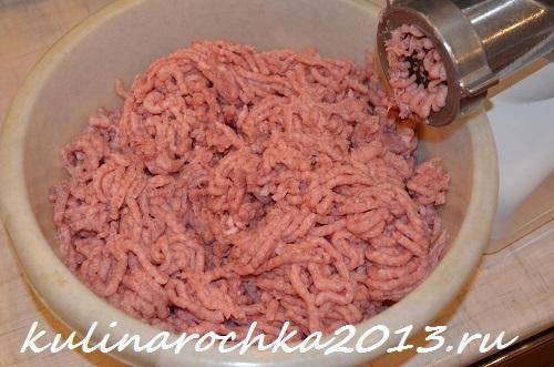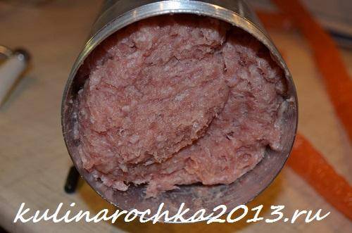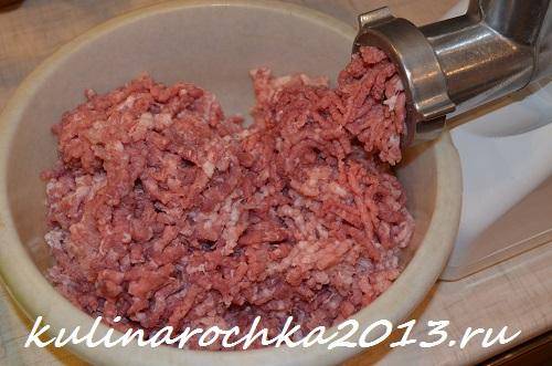 И сразу же полученный фарш пропускаем ещё раз через мясорубку. Всего нужно пропустить мясо 2-3 раза, чтобы оно стало нежным и хорошо измельчённым.