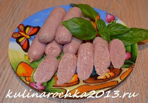 Как я уже вам сказала, готовила я подобные сосиски, но вместо воды в фарш я добавила молока. Посмотрите, на первый взгляд их ничем не отличить от магазинных сосисок.