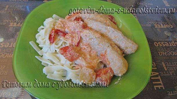 Хорошенько размешиваем, чтобы не было комочков и выливаем соус в сковороду. Тушим 15 минут.