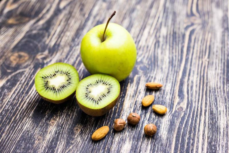 - Некоторые ягоды и фрукты. Наиболее полезные: киви – содержат большое количество витамина С, черешня – благотворно сказывается на состоянии нервной системы, груша – богата клетчаткой, нормализует работу кишечника. Богаты клетчаткой яблоки и цитрусовые: грейпфруты, апельсины.