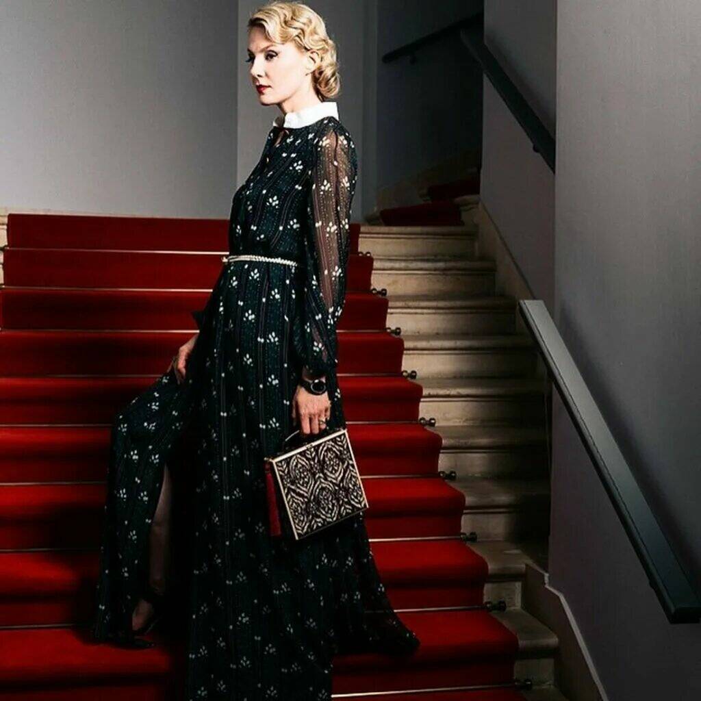 Платье-макси тоже будет хорошим вариантом. Фото ниже – тому подтверждение, поэтому оно должно быть в гардеробе. Нет ничего более изящного, чем посетить спектакль в красивом вечернем платье.