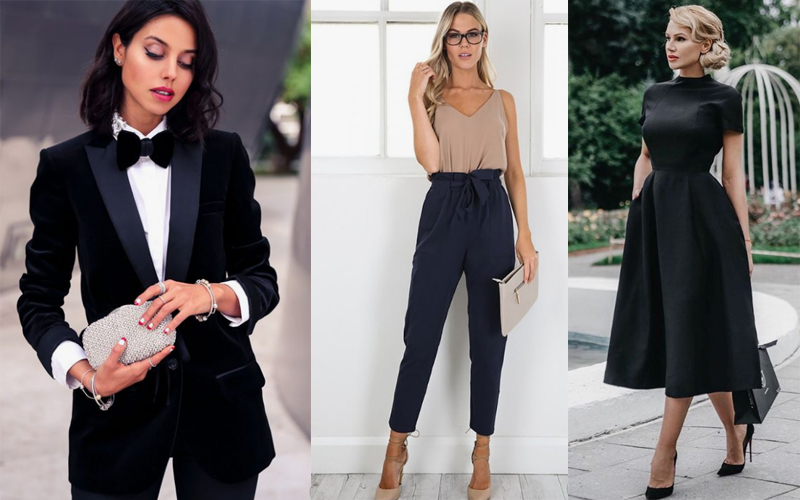В этом случае отличным выбором станет брючный костюм, дополненный яркими аксессуарами. Можно остановить свой выбор и на красивом кружевном платье.