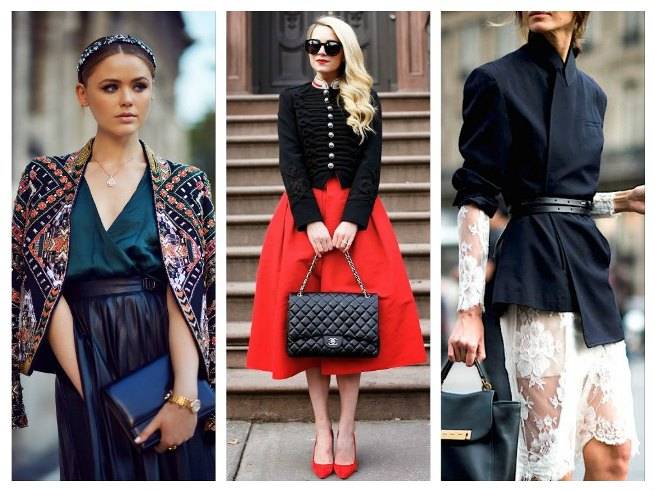 Зимой и осенью мы выбираем скорее театральную стилизацию в черном, темно-синем, а также красном или коричневом цвете.