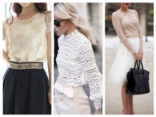 Главное – сосредоточить внимание на эффектной отделке вещи, например, кружеве или рюшах, чтобы не было ассоциаций с деловым или офисным стилем, а только с вечерним и изысканным. Так же весомый аргумент в пользу такого решения — наверное, у любой женщины есть в гардеробе нарядная вещь, которая подходит и для повседневной носки