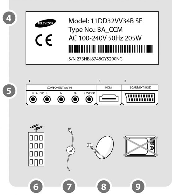 4. Рассмотрите телевизор сзади. Запишите его название и модель. Сфотографируйте выходы.