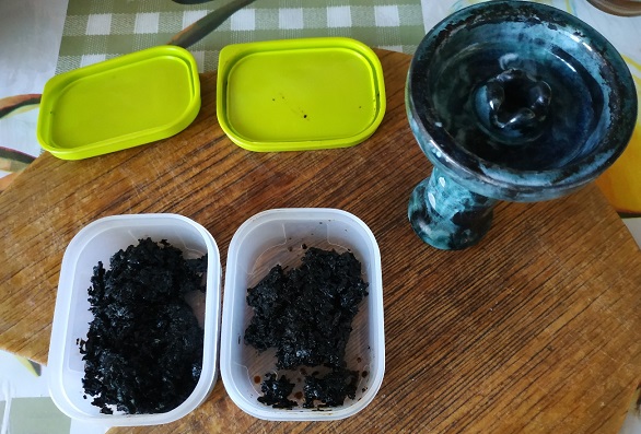 Она может быть сделана из разного материала: металла, глины, стекла, силикона, фруктов… Лучшим вариантом считается глиняная чаша. Однако и у неё есть свои недостатки: она быстро нагревается и хорошо впитывает ароматы. Для фруктовой чаши необходим более сильный нагрев, что достигается использованием большего количества угля.